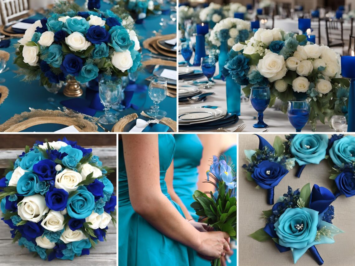 This wedding color palette consists of teal blue, royal blue, and white to make a color palette that looks absolutely stunning.
